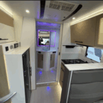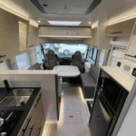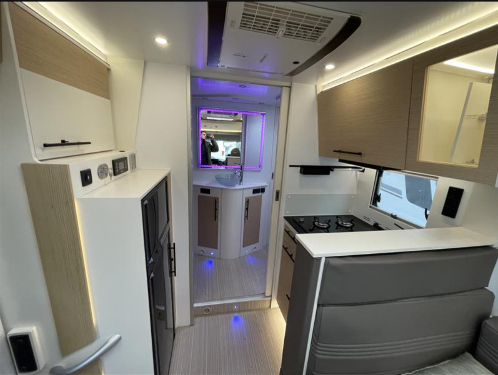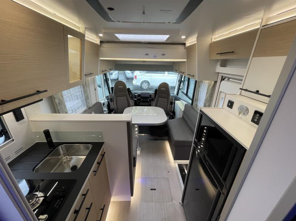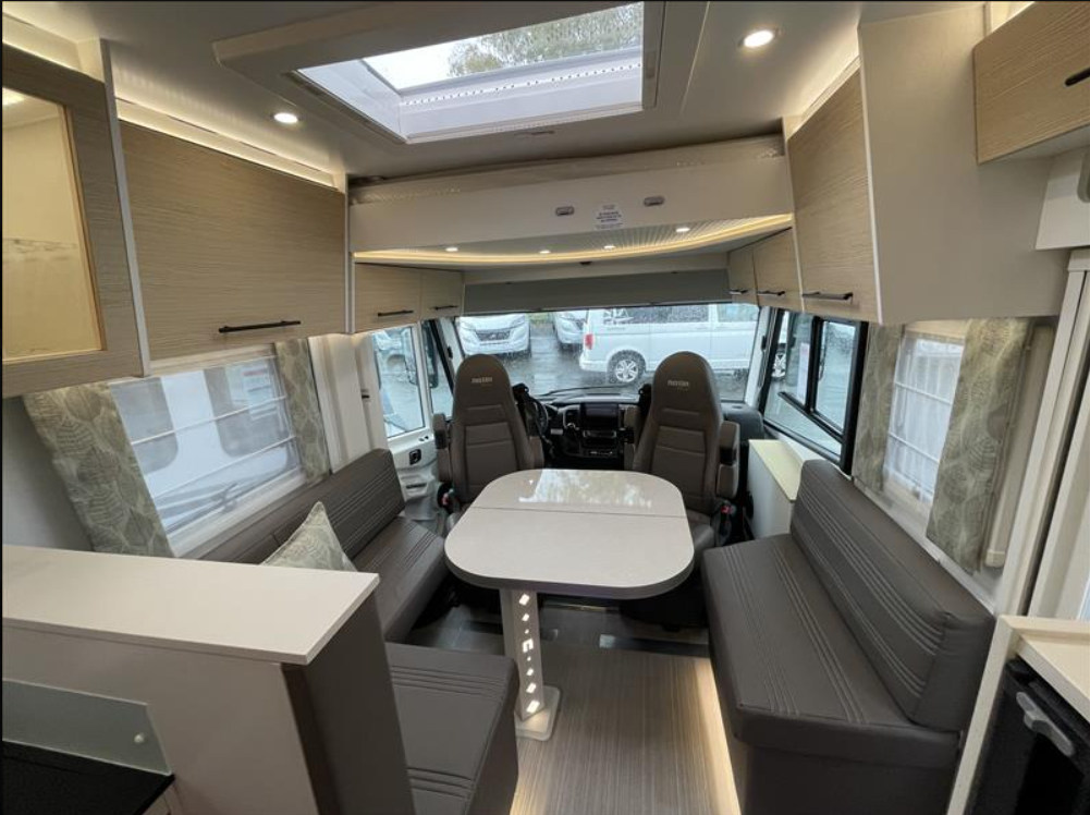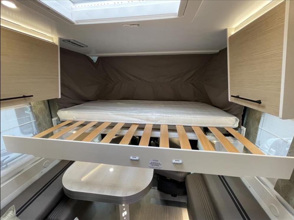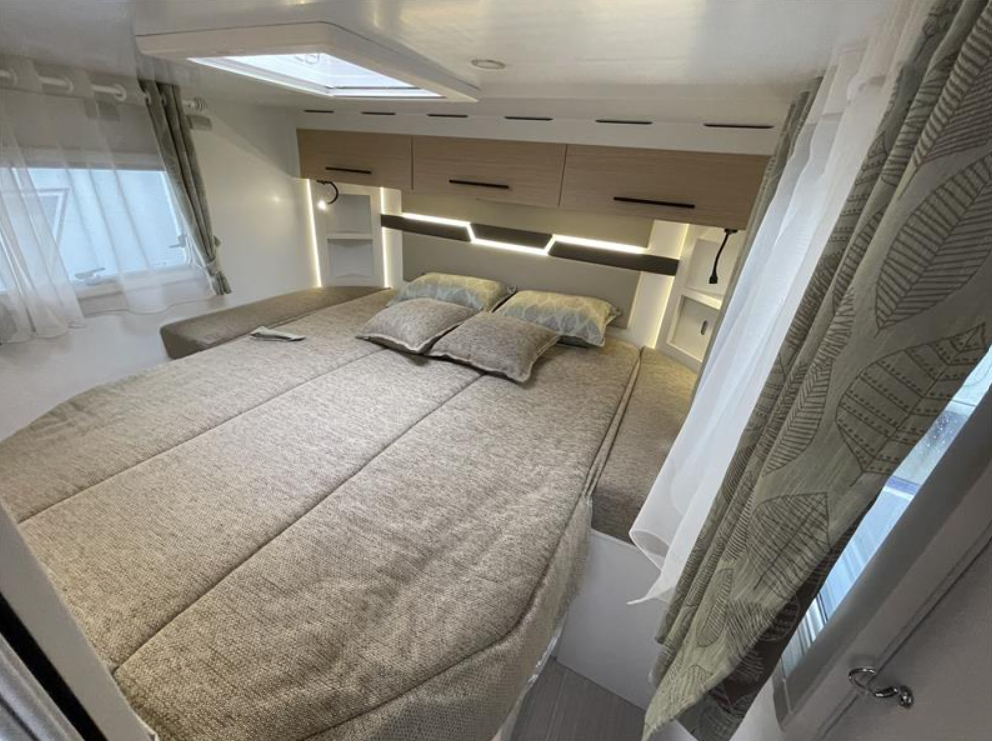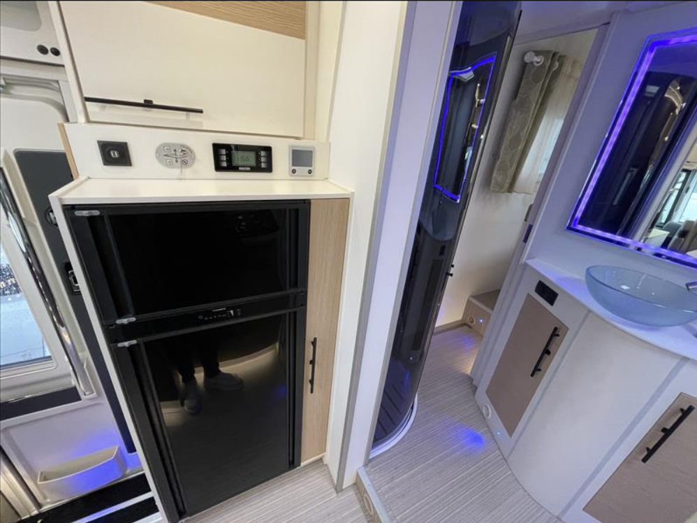 Motorisation 180 cv, Pack Elite Edition : Batterie lithium 200 A + convertisseur, climatisation de toit TRUMA, panneau solaire 150W avec régulateur, support TV écran plat chambre, Pack I Progress et Heavy, Boite automatique, chauffage 220V réversible, Rideaux électriques, Vision sécurité 360°, Conbiné autoradio caméra de récul 10 pouces, chauffage central ALDE, douchette extérieure eau froide/chaude, store extérieur blanc avec éclairage, protection de sol
