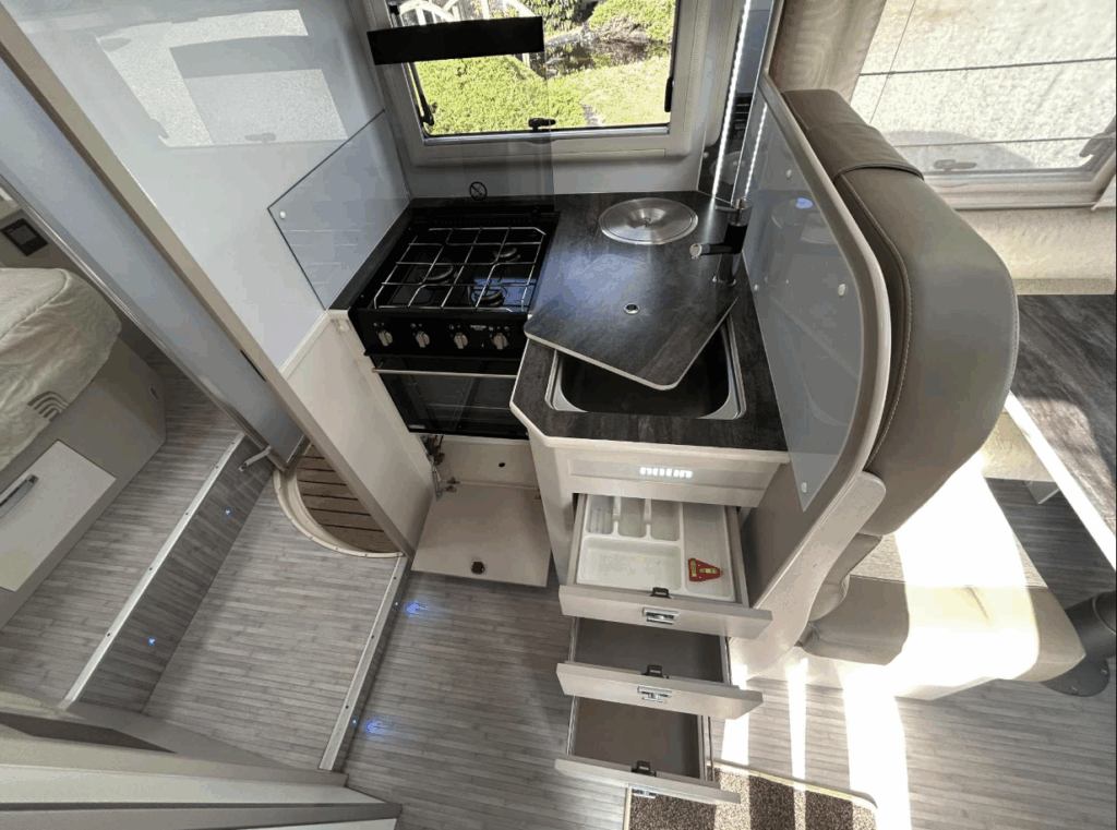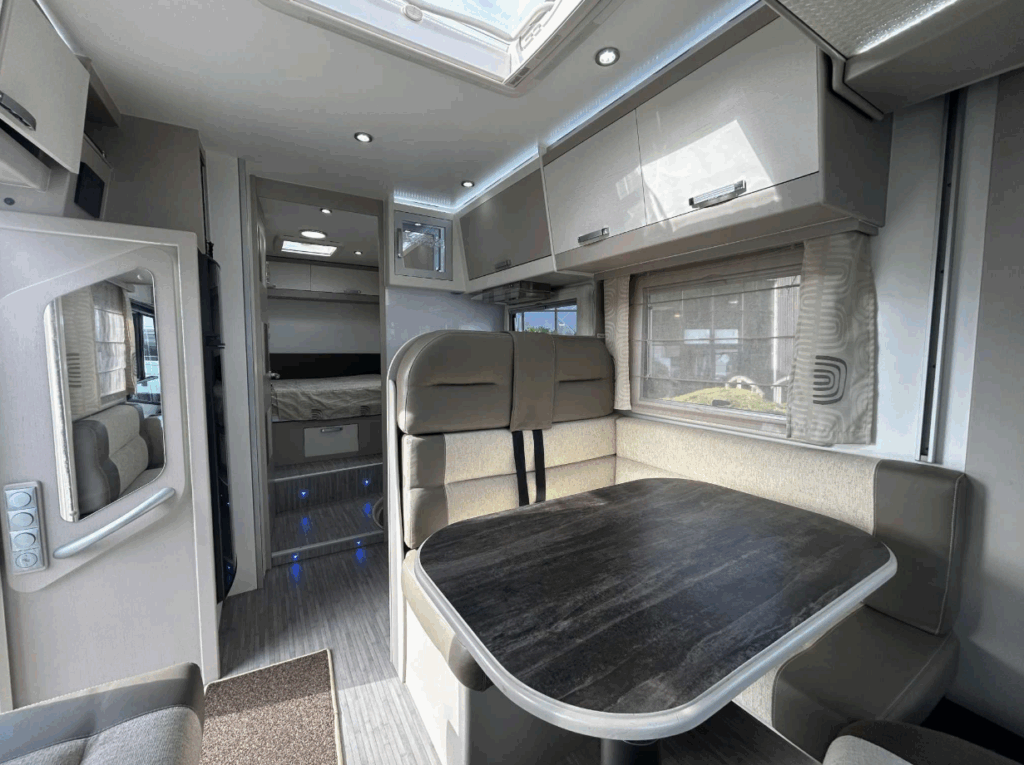 STATION MULTIMEDIA, CAMERA DE RECUL, GRAND FRIGO, HOTTE ASPIRANTE, MARCHE PIEDS ELETRIQUE, TV, ANTENNE SAT AUTO, PANNEAU SOLAIRE, STORE EXTERIEUR, ROUE DE SECOURS, JANTES ALU, PORTE VELOS