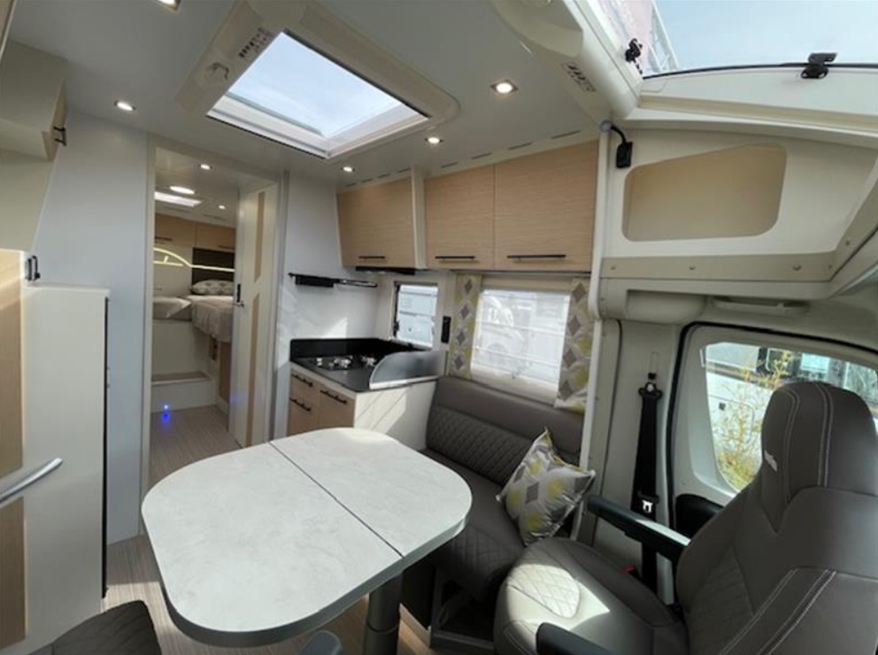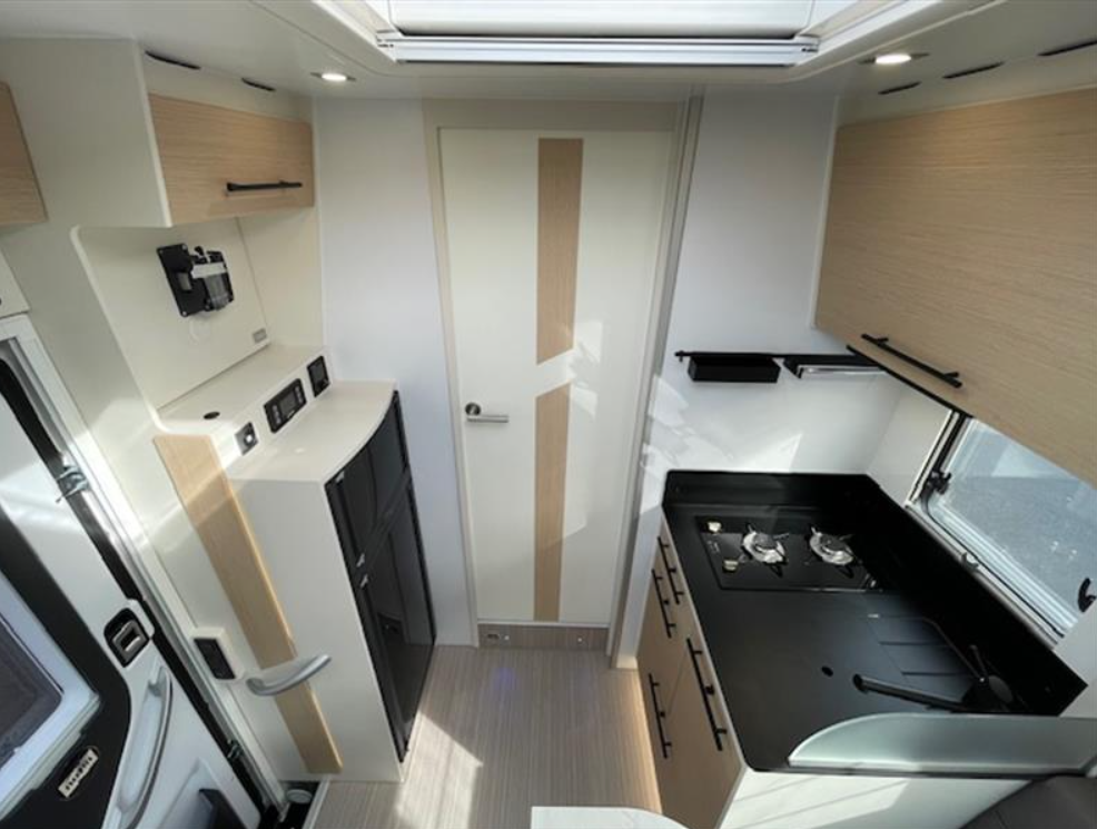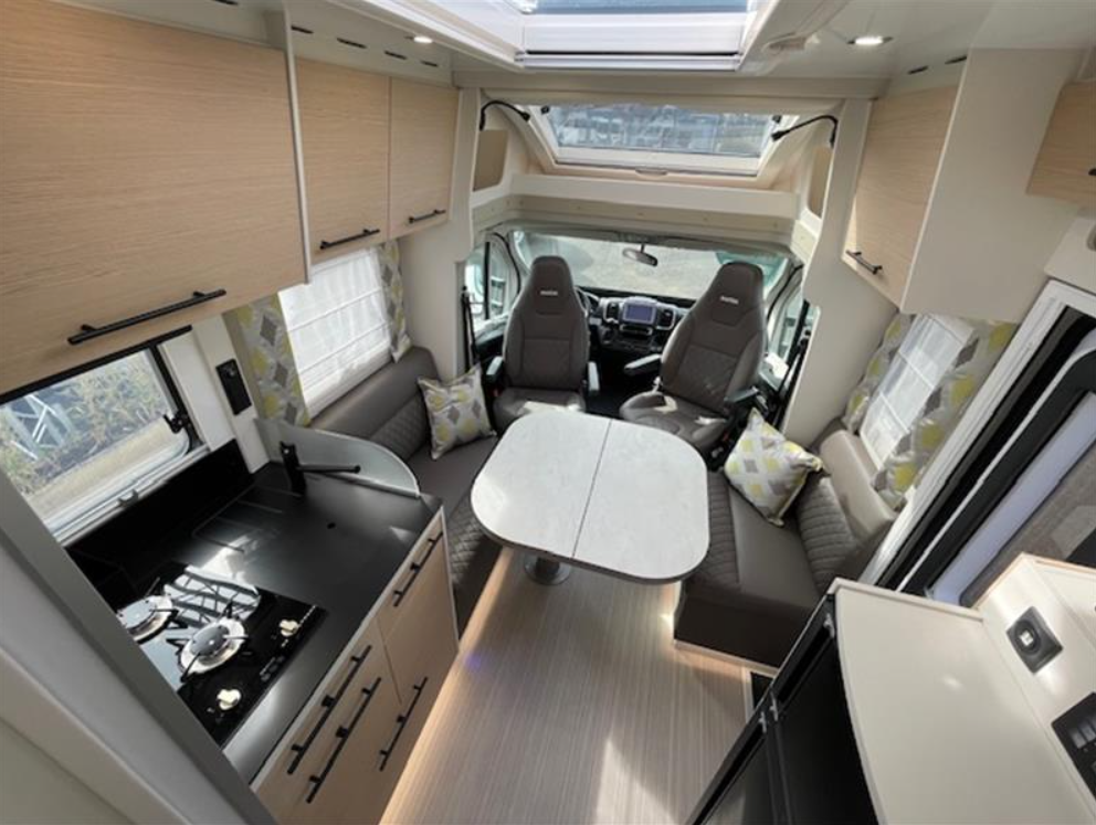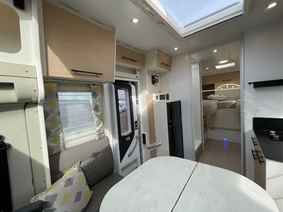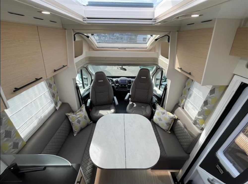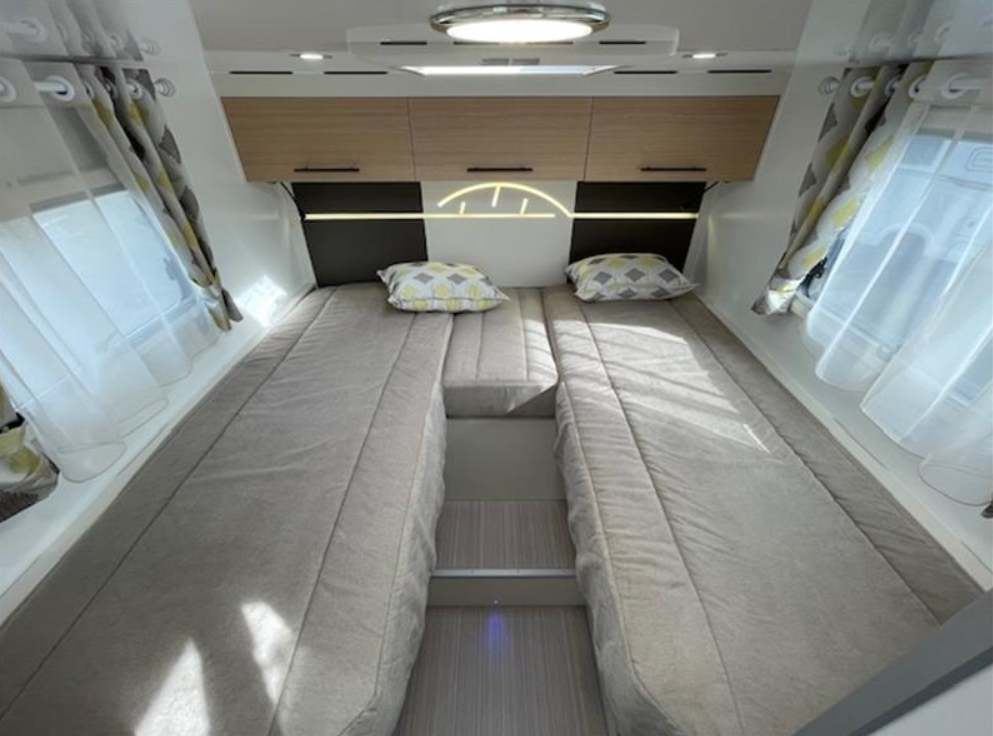 Complément de couchage, Pack Primavera (Pack progress, Boite automatique, Radars de stationnement AV + AR, Batterie lithium, panneau solaire 150W + MPPT, Combiné autoradio et caméra de récul sur fiat 7 pouces, Feux diurnes leds, traction +/Hill descent, booster 120/12V 40A, réservoirs eaux usées isolé et chauffé, Antibrouillard AV, prédisposition lithium chargeur 230/12V 40A, Marche pied électrique cellule), Ambiance Scandinave, Protection de sol
