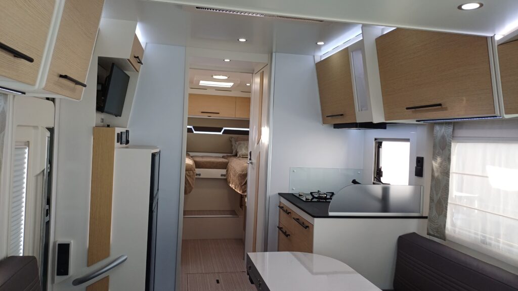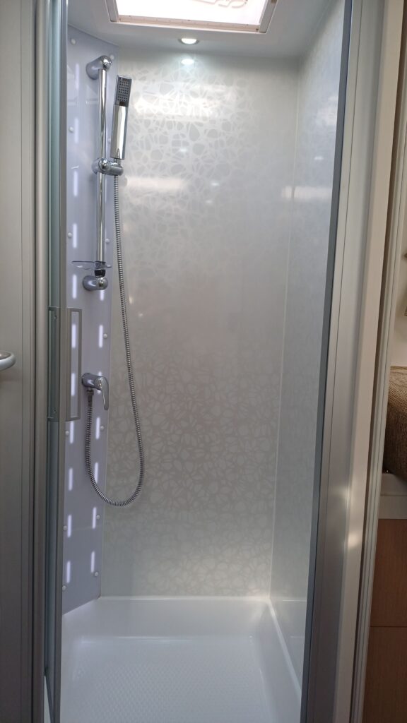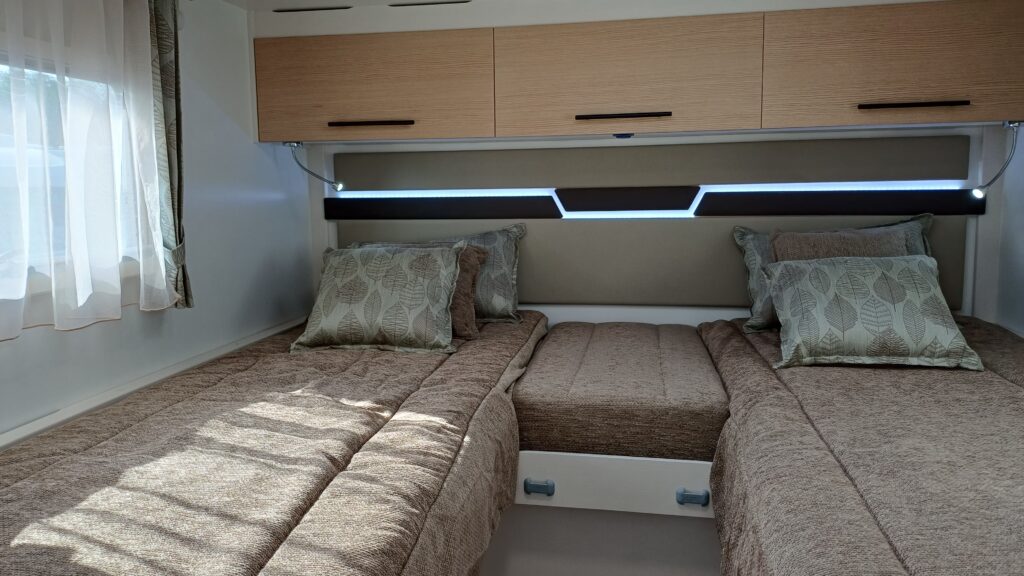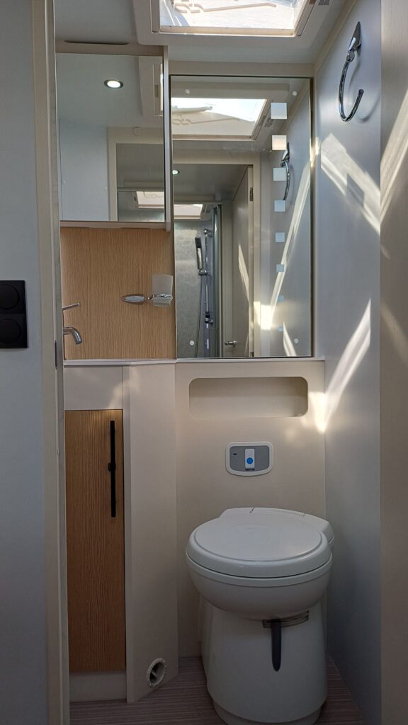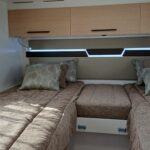 CHASSIS HEAVY + RENFORTS DE SUSPENSIONS PNEUMATIQUES COMPRESSEUR – ANTENNE SAT AUTO + TV – PANNEAU SOLAIRE 150 w – BATTERIE LITHIUM + CONVERTISSEUR – BOITE AUTO – PORTE CHAMBRE + 2 RANGEMENTS DANS LE DOUBLE PLANCHER