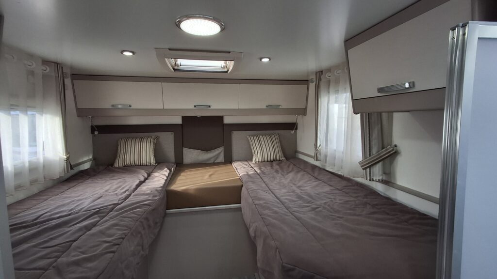 Motorisation 150 cv, Store remis cabine, Jantes alu, Antibrouillards, TV, Antenne sat automatique, Four, Panneau solaire, 2 batteries AGM 110 Amp, Store, Convertisseur 300W, Autoradio camera de recul, Suspension pneumatique arriere
